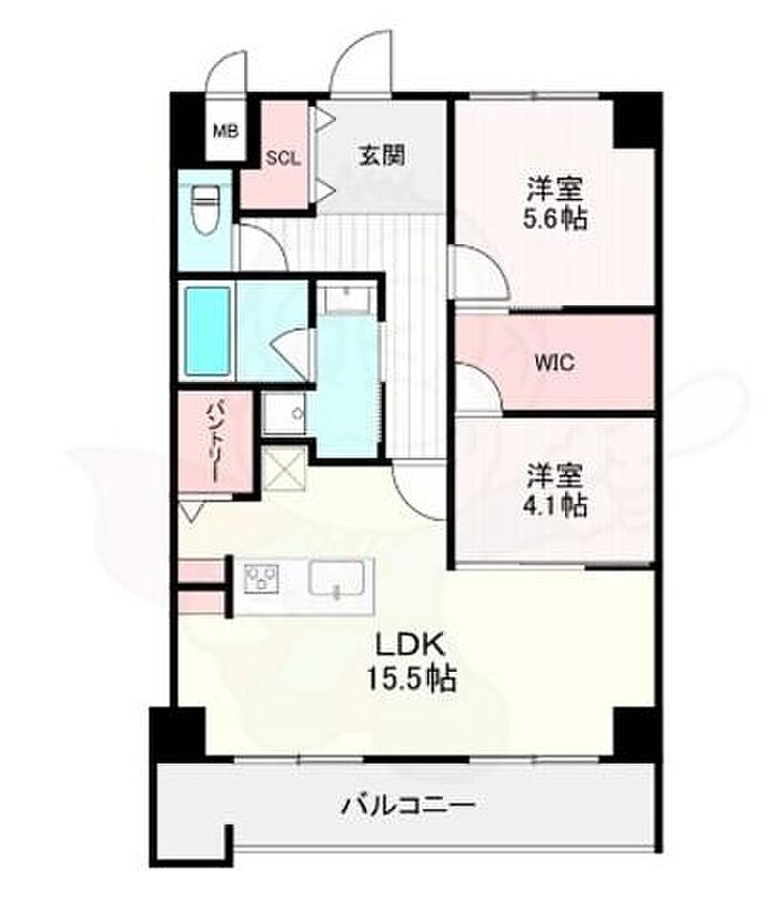 サンショウレジデンス西新 2LDK/5階