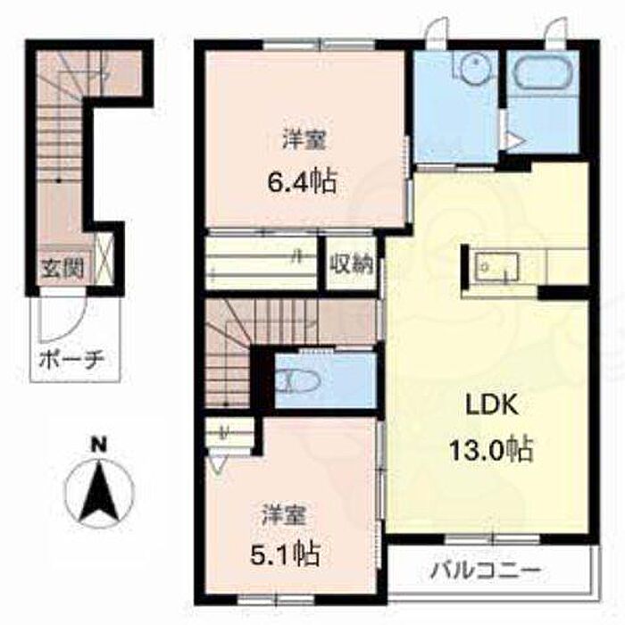 オークヴィレッジ D棟 202 2LDK/2階