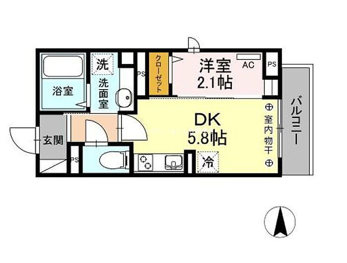 メゾン二長町 1DK/2階