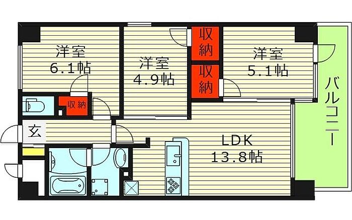ジャルディーノ関目 3LDK/6階
