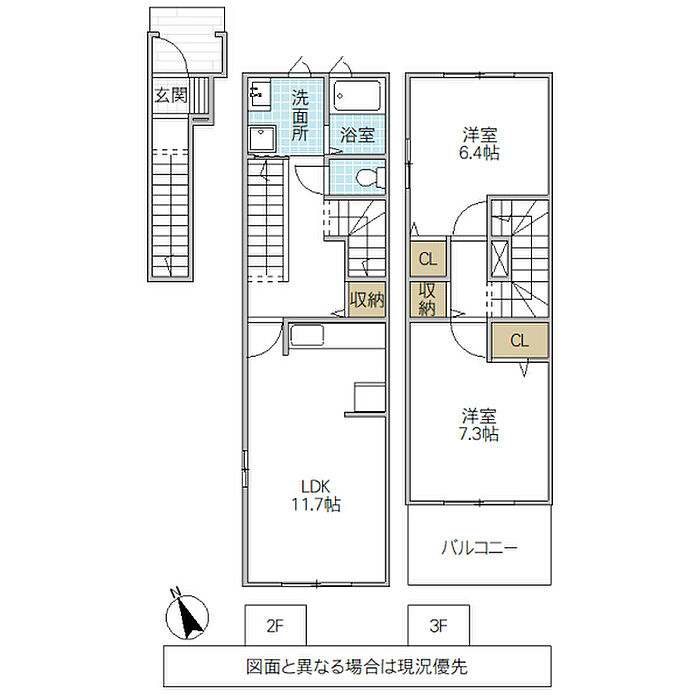 (2F:LDK11.7//3F:洋6.4/洋7.3(メゾネット))