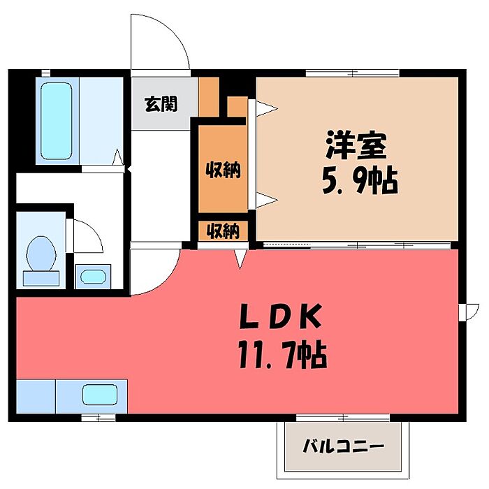 伊勢崎市西田町 アパート 1LDK/2階