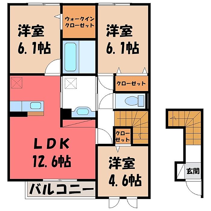 伊勢崎市東小保方町 アパート 3LDK/2階