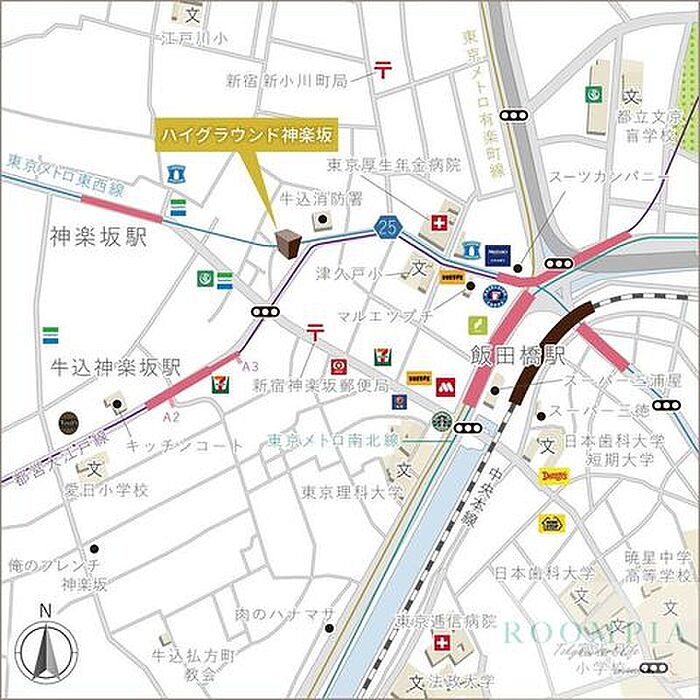 牛込神楽坂駅 360 m
