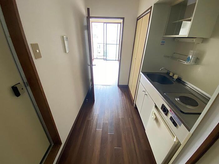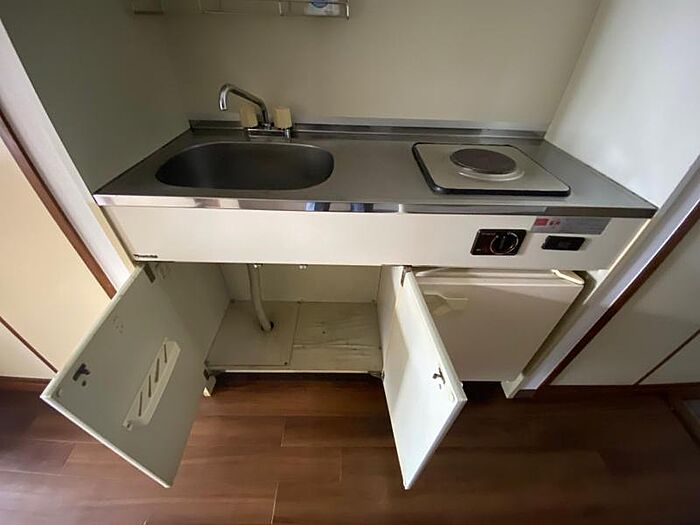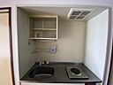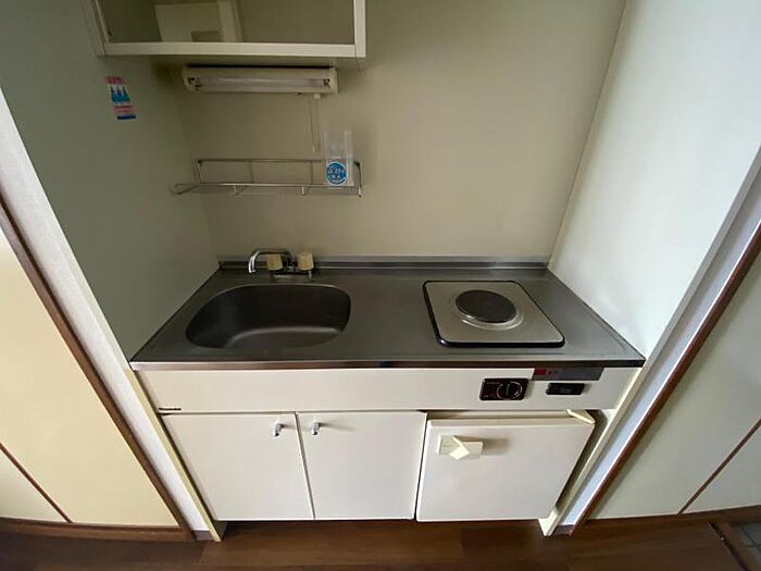 全室角部屋エアコン付 1口電気コンロ、ミニ冷蔵庫付き照明有り