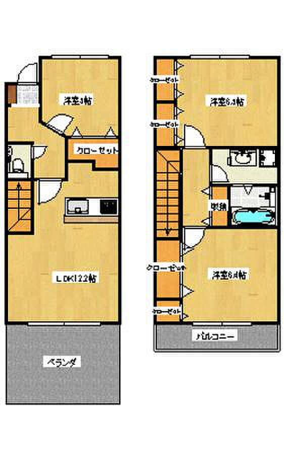 高松市香西北町のメゾネットタイプ3LDKのお部屋です 上下階の音を気にせず戸建て感覚で生活できるメゾネットタイプ専用庭もあるので外のスペースも有効活用できます3口ガスコンロのシステムキッチンでお料理がはかどりますペット飼育もご相談ください