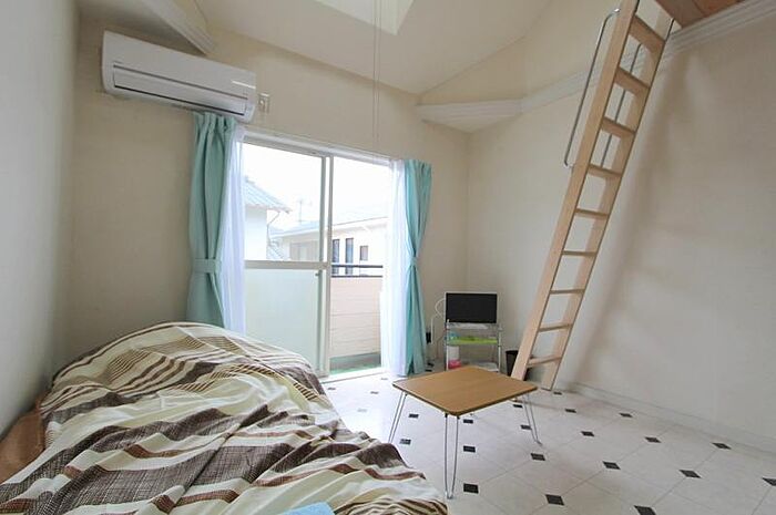 ペット飼育可能高松町のロフト付き1Kタイプのお部屋です エアコン・照明器具・来客時に安心なTVモニターホン付きバス・トレイ別で温水暖房便座設置済みロフトがあるのでスペースを有効活用できますインターネット無料です