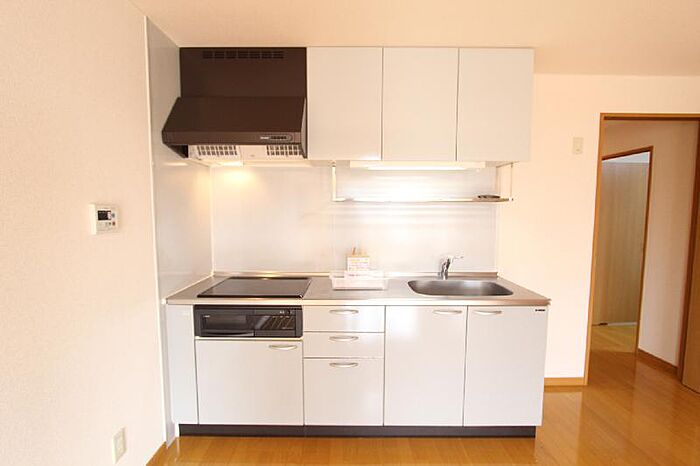 高松市多肥下町の3DKマンションです 最寄り駅のことでん太田駅まで徒歩約10分インターネット無料お掃除簡単なIHクッキングヒーター3口のシステムキッチンです来客時に便利なTVモニター付インターホン追い焚き機能付きユニットバス