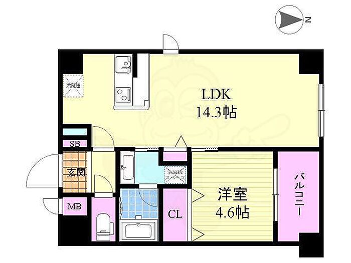 法人可 単身者可 増田屋ビル701、1LDK、専有面積43.24平方メートル、烏丸線五条駅徒歩7分でございます。