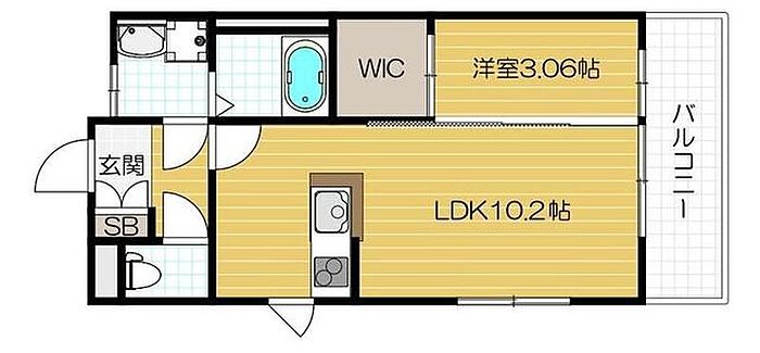 広々としたお部屋です。ベランダは南西向きですので、日当たりがよく洗濯物がよく乾きますよ。ウォークインクローゼットもついておりますので、荷物が多い方も安心です。・インターネット接続可