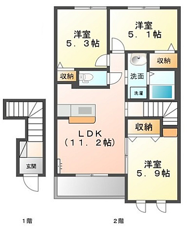 リバーサイド金磯A 205 3LDK/2階