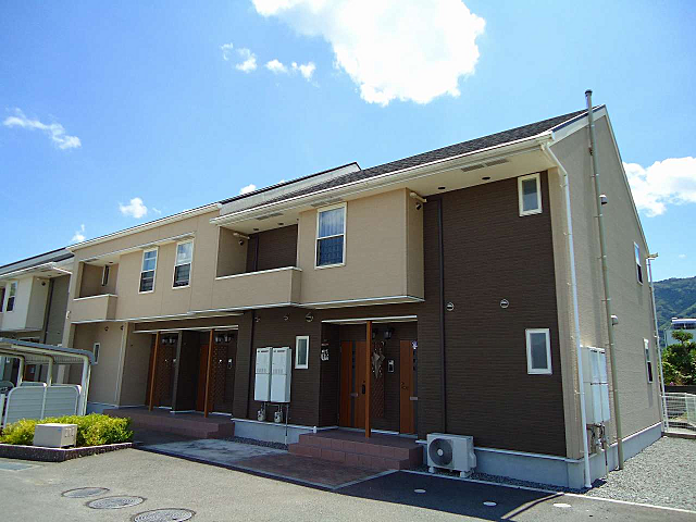 モニタ付インターホン有り。閑静で自然豊かな地域のアパート。