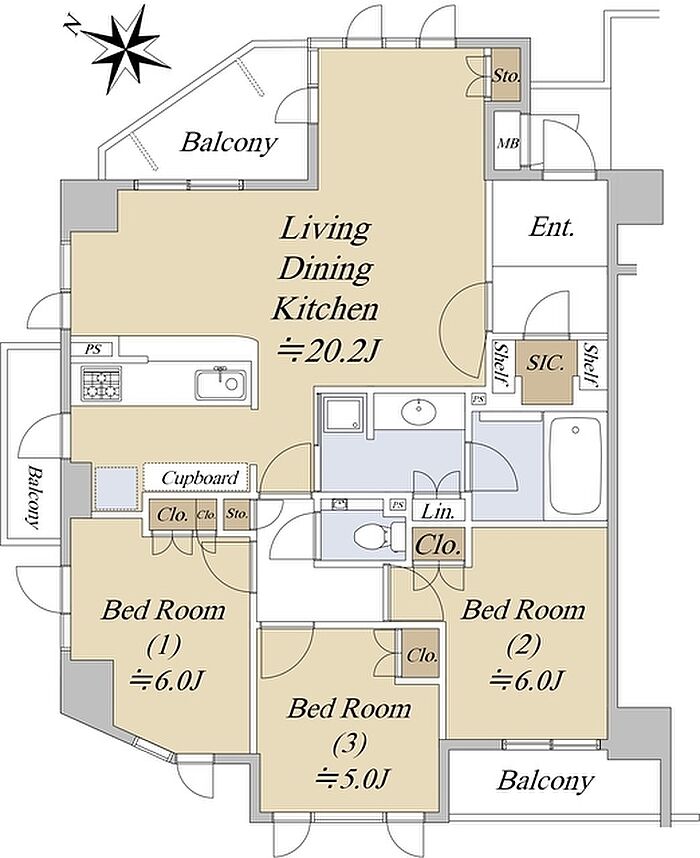 ベルヴィ芦屋 3LDK/3階
