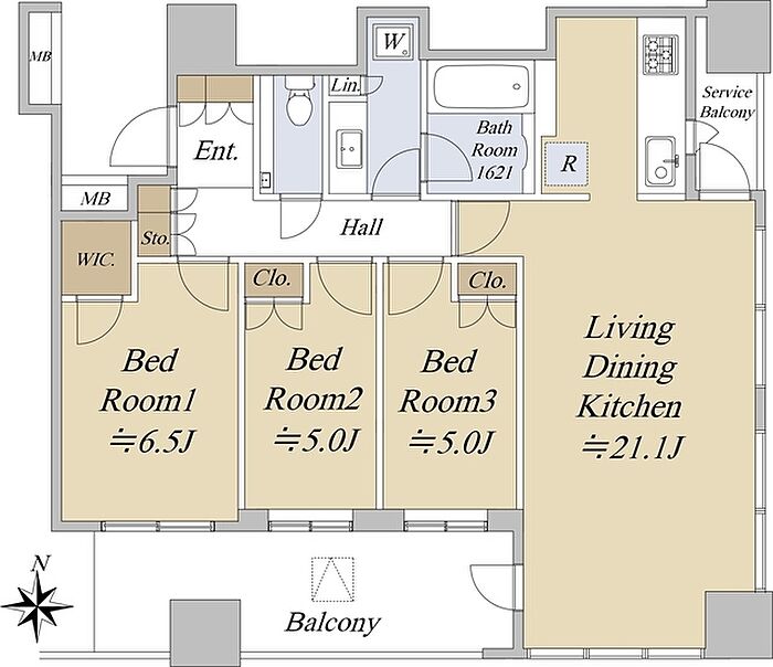 クラッシィタワー淀屋橋 3LDK/21階