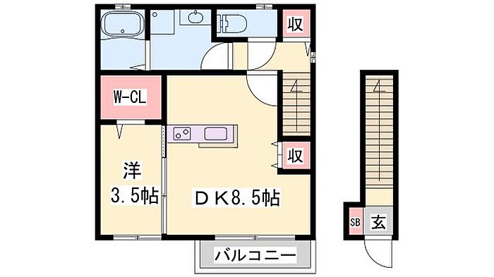 姫路市双葉町 アパート 1DK/2階