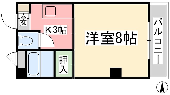 福岡マンション 1K/3階
