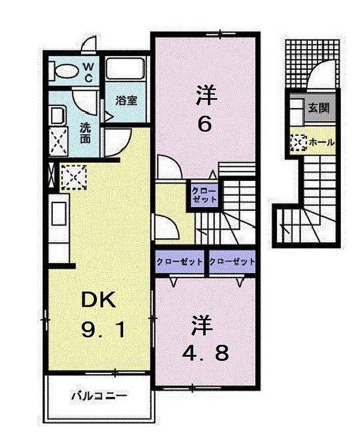 福山市神辺町 字徳田 アパート 2DK/2階