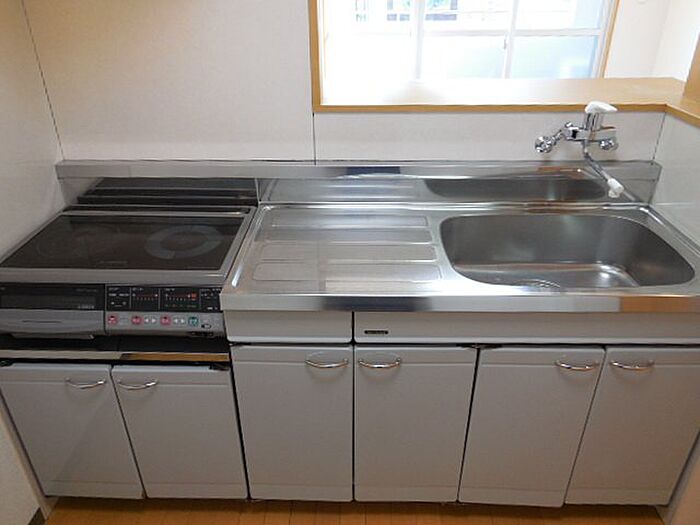 日当り良好で、お部屋も少し広め。人気のカウンターキッチンでIHクッキングヒーター付