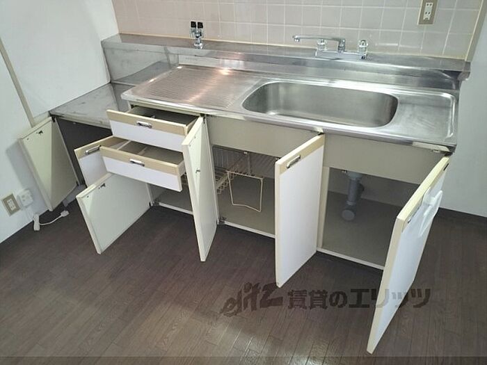 【生駒南第二小学校区・生駒南中学校区】キッチンには2口ガスコンロを置けるスペースがあります。主な開口部が南向きで洗濯物も乾きやすいです。周辺には業務スーパーが徒歩7分にあり便利です。