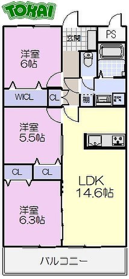 ボンジュールTakamachi 2B 3LDK/2階