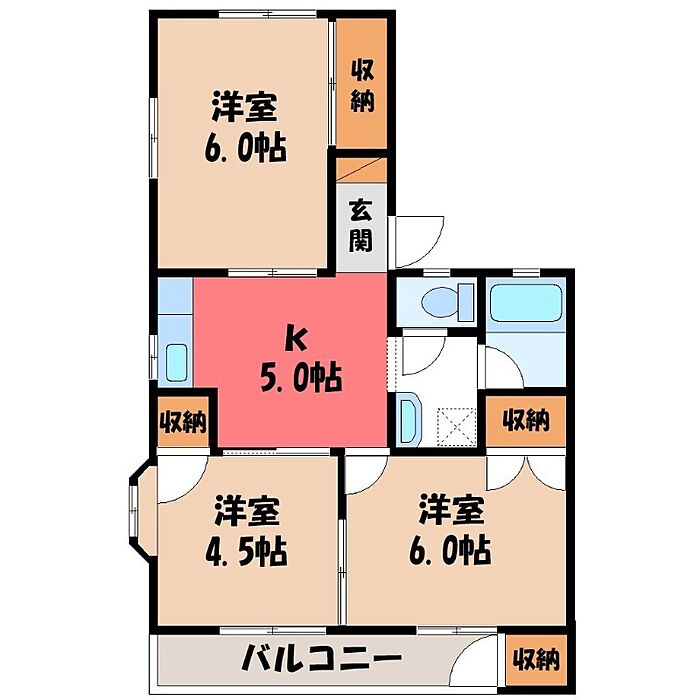 ツインハイツB 3K/2階