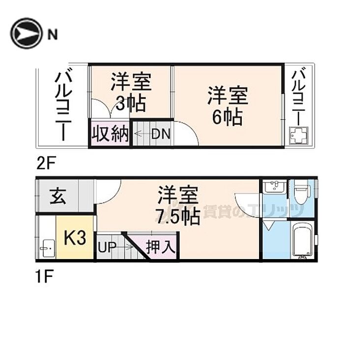 寝屋川市本町 テラスハウス 3K/1階