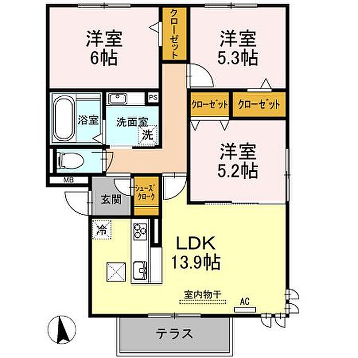 ラルジュ高峯B 3LDK/3階