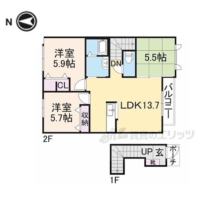 コンフォート東福寺 3LDK/2階