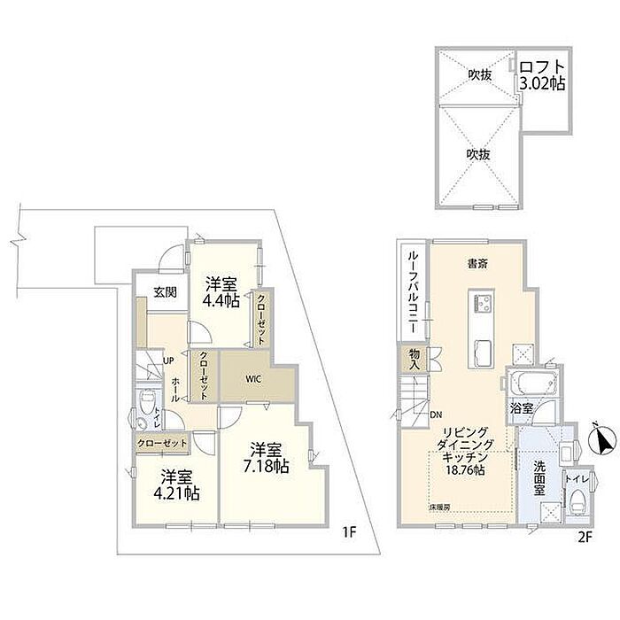 駐車場付き築浅戸建 開放感のある吹抜けリビング ウォークインクローゼット完備の豊富な収納