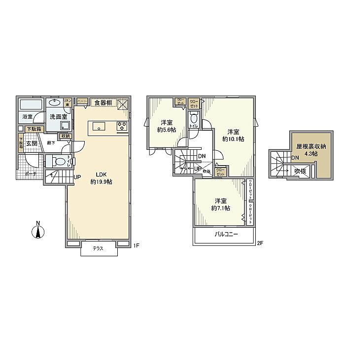 (リビングダイニングキッチン 19.9帖(1階)
