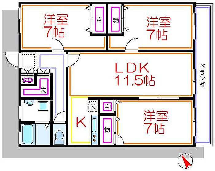ユネックスパレス 3LDK/3階