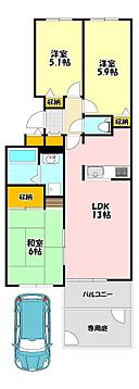 ヒルズ金剛寺池壱番館B棟 3LDK/1階