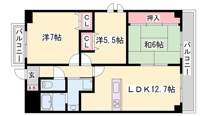 シャトー北条 3LDK/2階