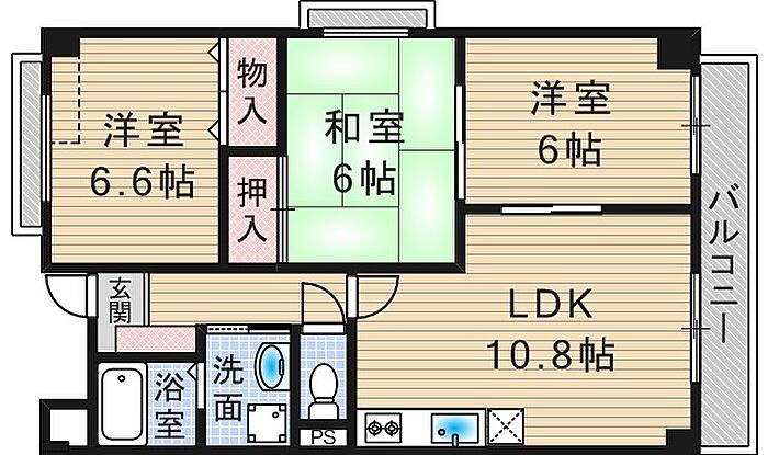エーデル雲雀丘 三番館 3LDK/3階