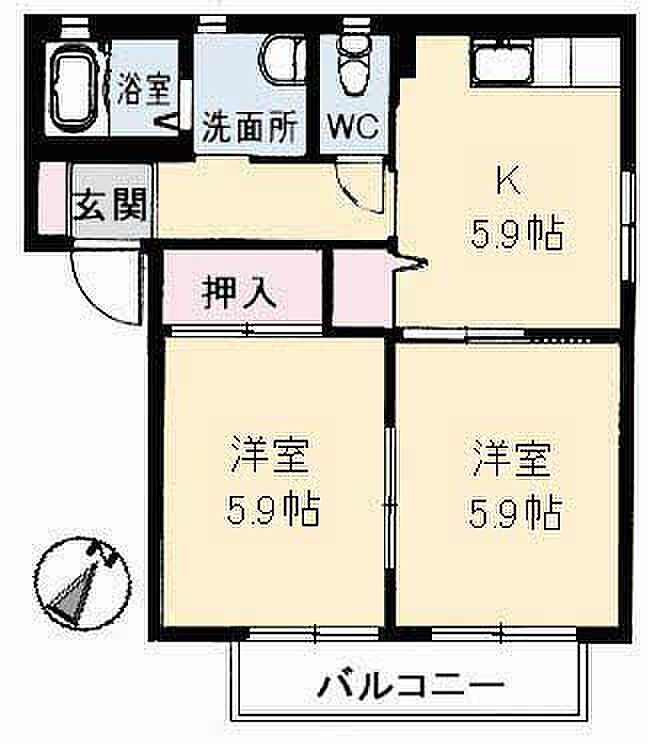 洋室 5.9帖×2)
