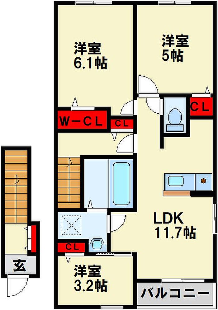 遠賀郡水巻町緑ケ丘2丁目 アパート 3LDK/2階