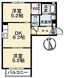 岡山市北区平田 アパート 2DK/2階