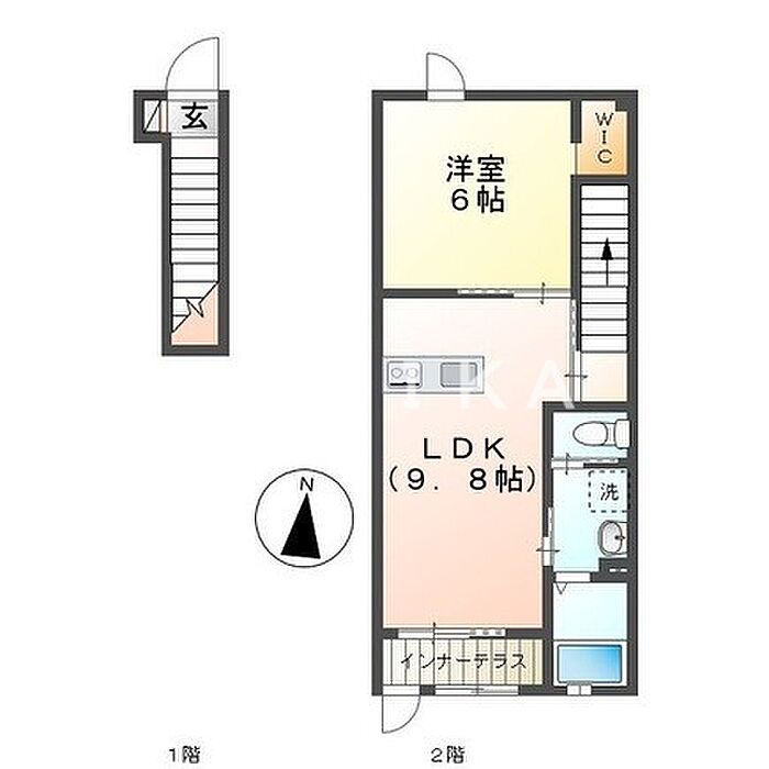岡山市北区久米 アパート 1LDK/2階