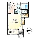 岡山市北区横井上 アパート 1K/1階