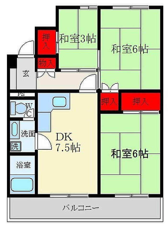 枚方ハイツ 3号棟 2SDK/3階