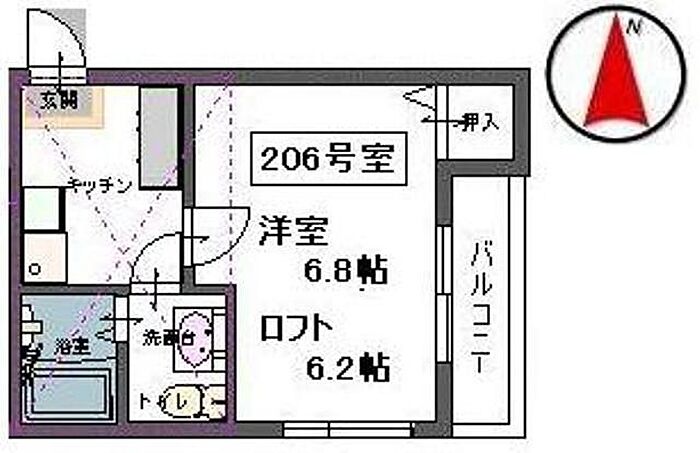 メゾン ヴェルディール 206 1K/2階