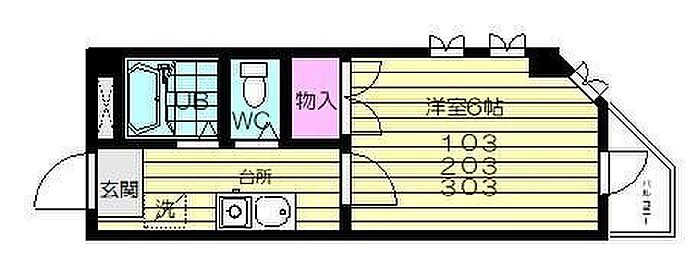 スカイヒルズ川内 203 1K/2階