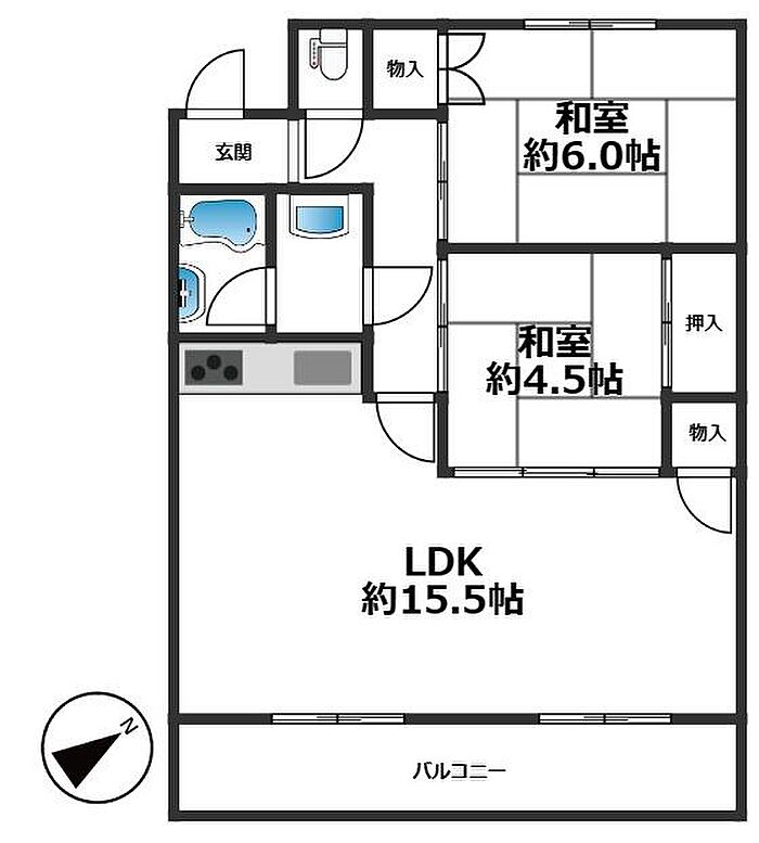 魚住コーポB 2LDK/4階