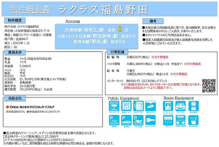 ※敷金・礼金0:個人契約限定※1年未満解約時は総賃料1ヶ月相当額の違約金が発生※個人法人ともに対象※エアコン洗浄費用:11,000円(税込み)