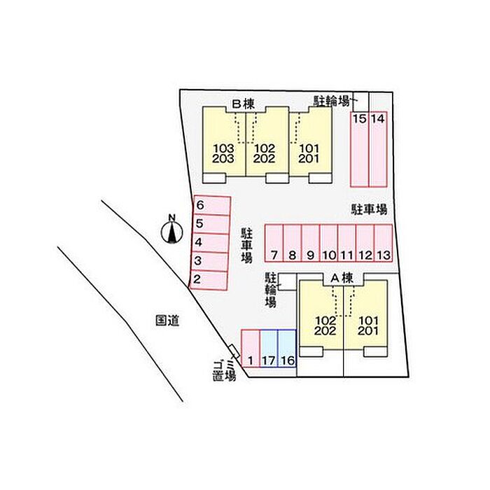 カルムアンジュ B 102 2DK/1階