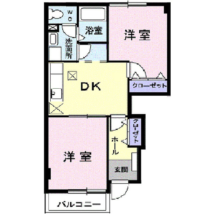 グリーン・ヒルB 102 2DK/1階