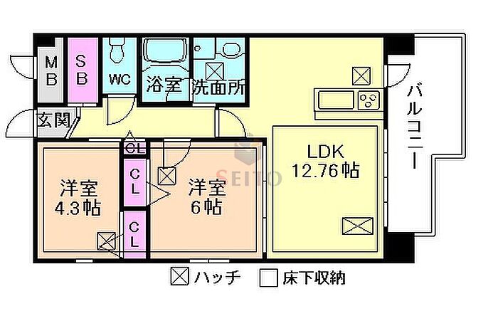築浅で人気の2LDKに空きがでました。設備充実で女性に大変人気です。大容量の床下収納付きでお部屋を広く使えます。