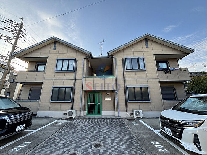 駐車場セット契約です。全室角部屋のプライベート設計