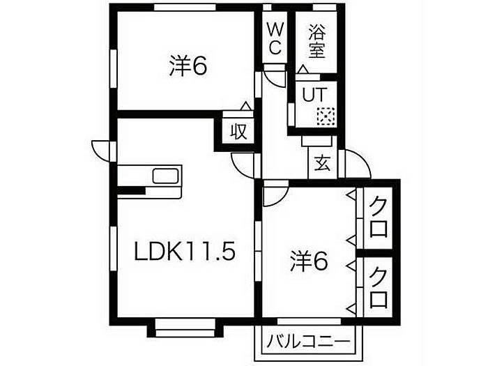 ロックウェルB棟 102号室 2LDK/1階