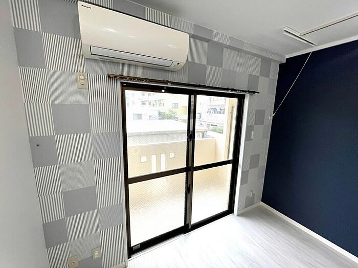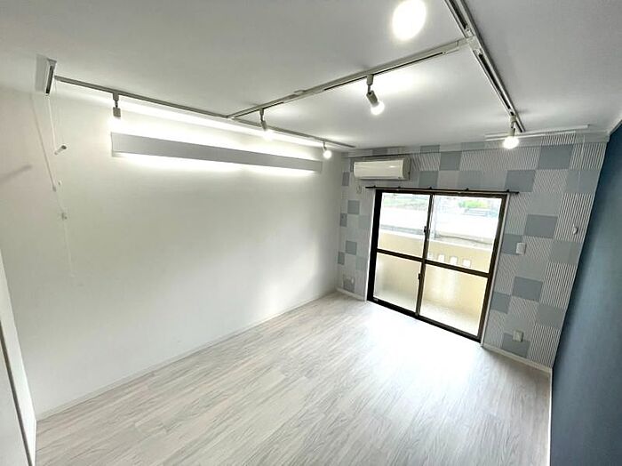 ※ LEDライト使用 ※便利な吊りハンガー・おしゃれな間接照明・レールライト・アクセントクロス☆1Rから1Kへリノベーション済みです